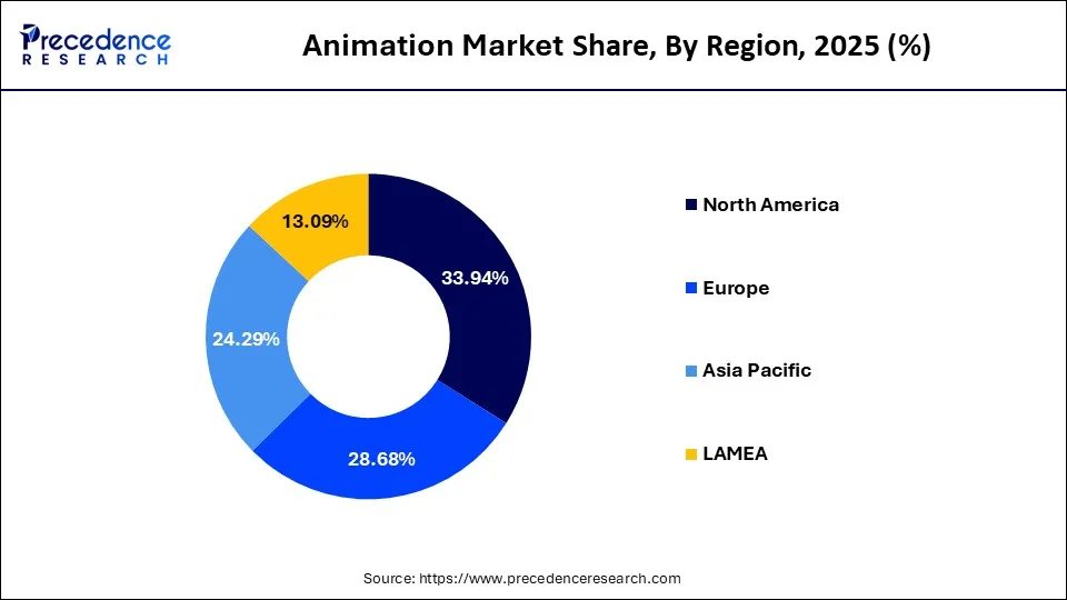 - North America dominated the global animation market in 2025, capturing 33.97% share, driven by strong streaming presence and advanced production ecosystems.